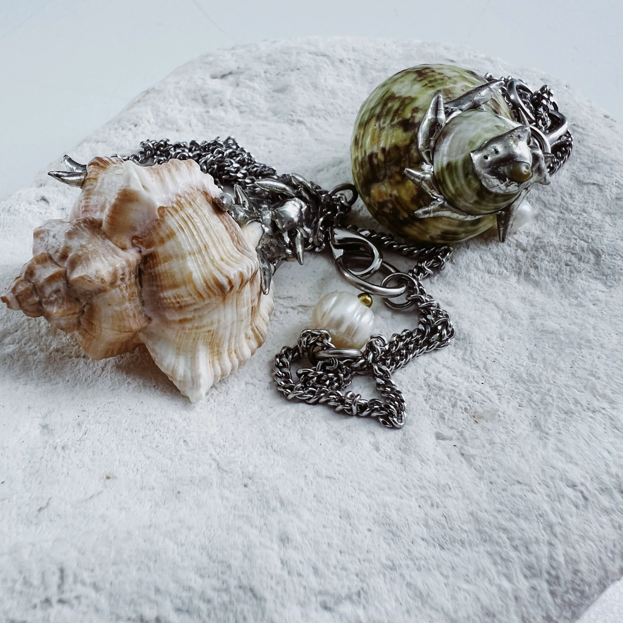 Monté sur une chaîne en acier inoxydable — à la fois mer et armure.