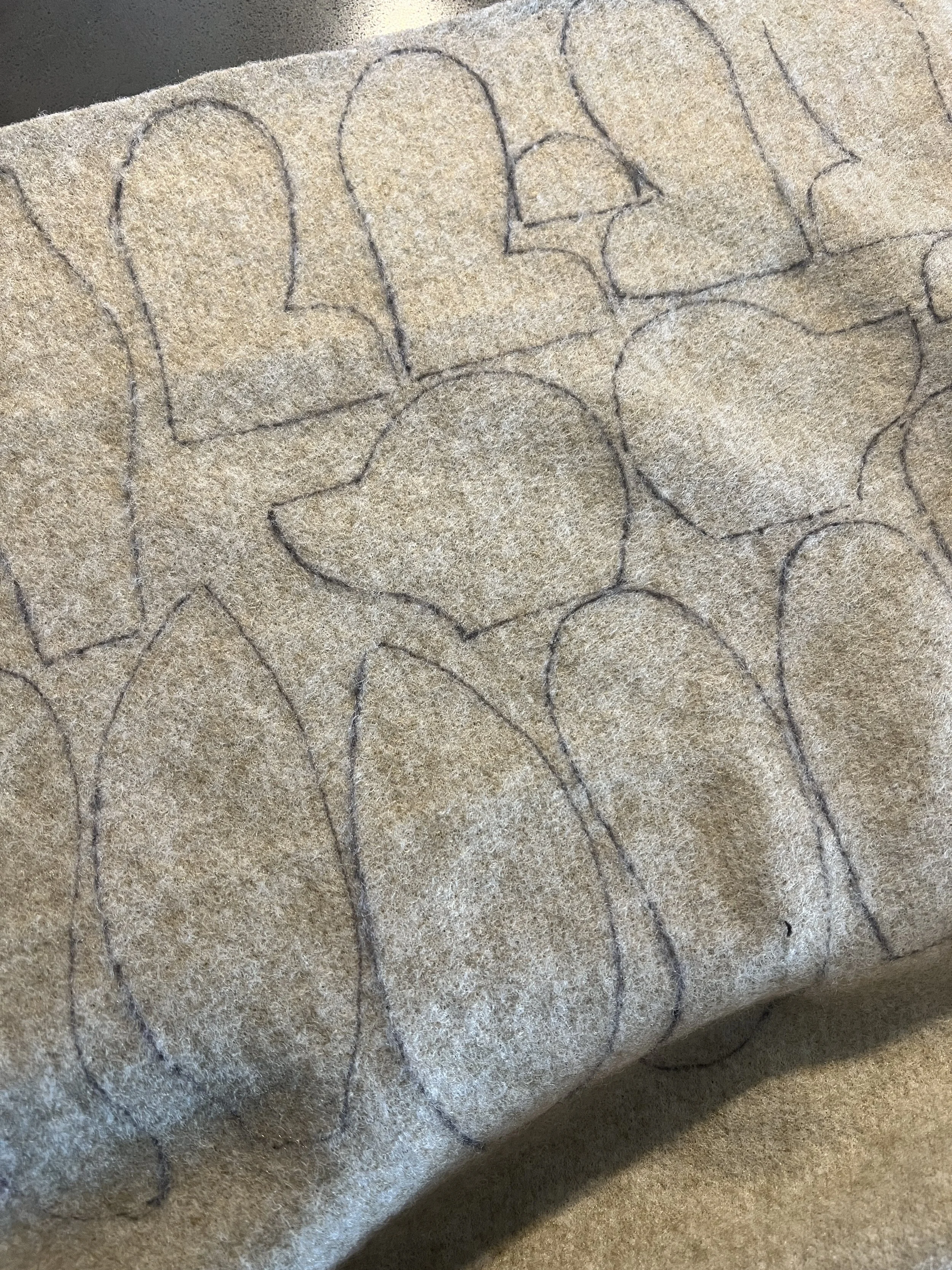 Going to be testing a little bear in this plush fabric (this is the inside of the fabric where I traced my pattern pieces) // Je vais tester un petit ourson dans ce tissu tout doux (voici l’envers du tissu où j’ai tracé mes morceaux).
