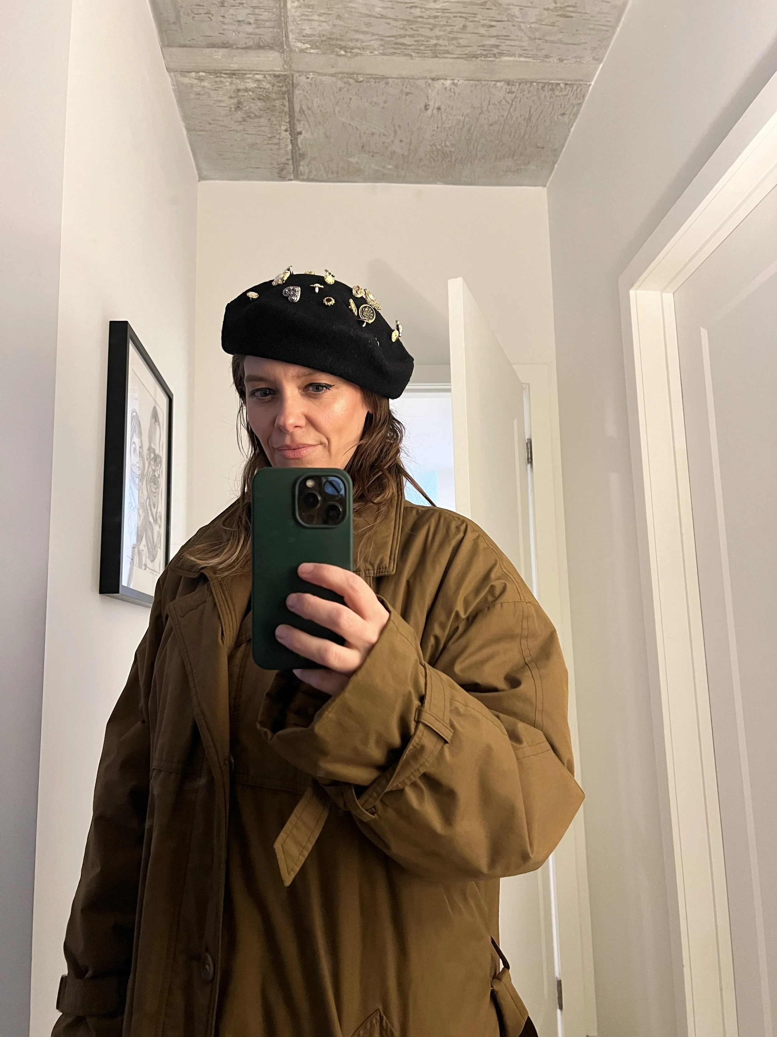I also made myself a beret — buttons from a trip to London fifteen years ago, fabric I’d been hoarding just as long. I’ve worn it nonstop since. When I went back fabric shopping, I spotted similar buttons, so I’m going to grab more and finish the remaining fabric into a small run of berets for the site.